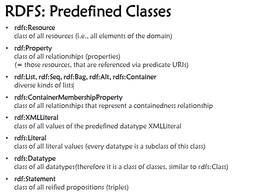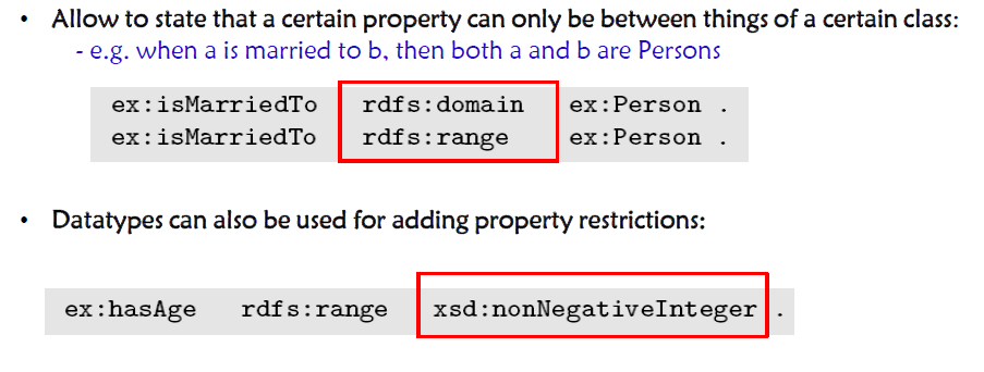 - Datatypes are not defined by RDF, but usually from XML Schema.