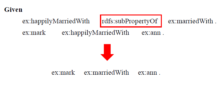 1 | ex:happilyMarriedWith rdfs:subPropertyOf ex:isMarriedTo . |
